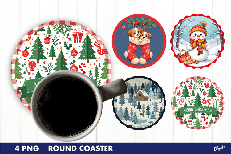 Christmas Coaster PNG. Round Coaster Sublimation example image 1