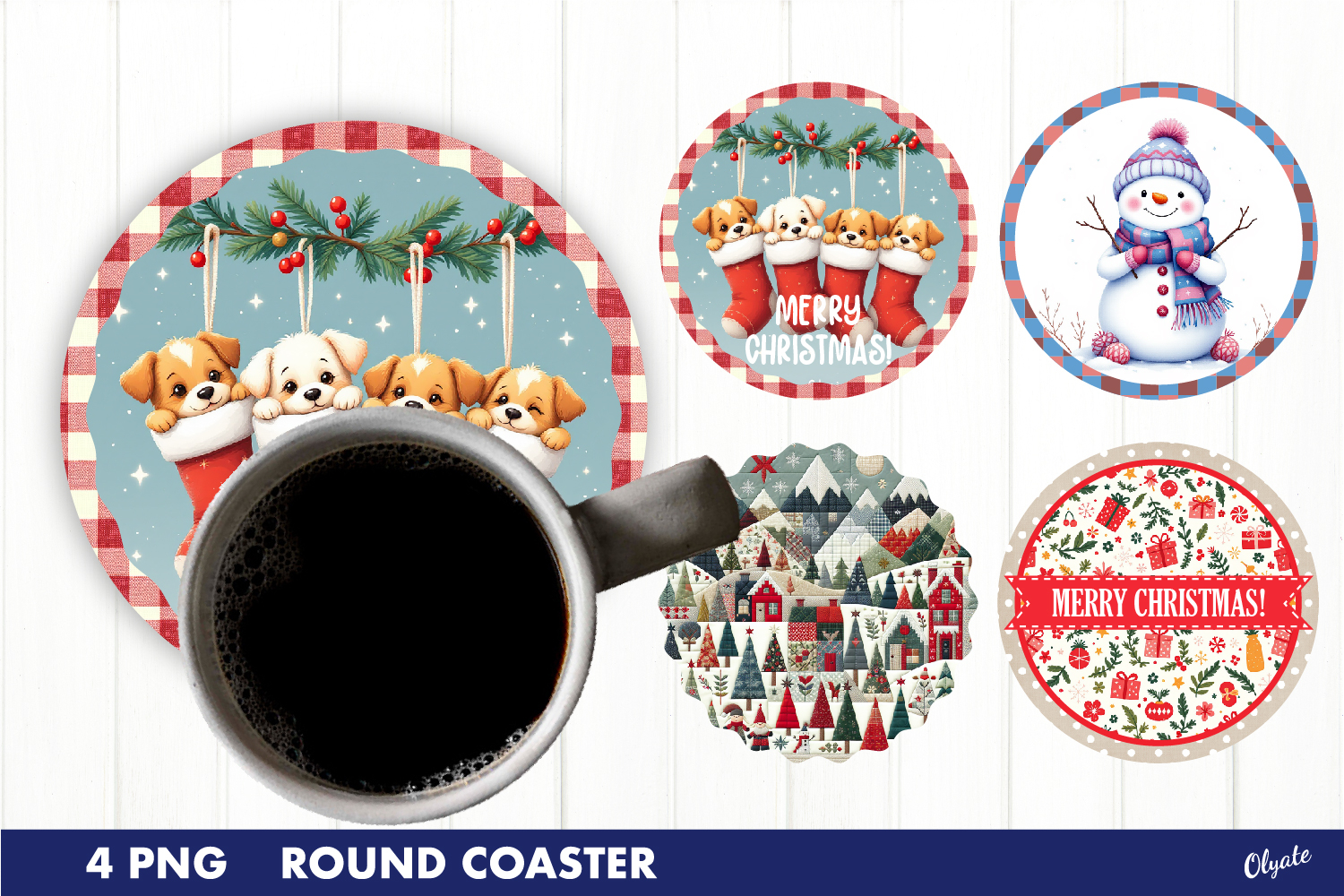 Christmas Coaster PNG. Round Coaster Sublimation