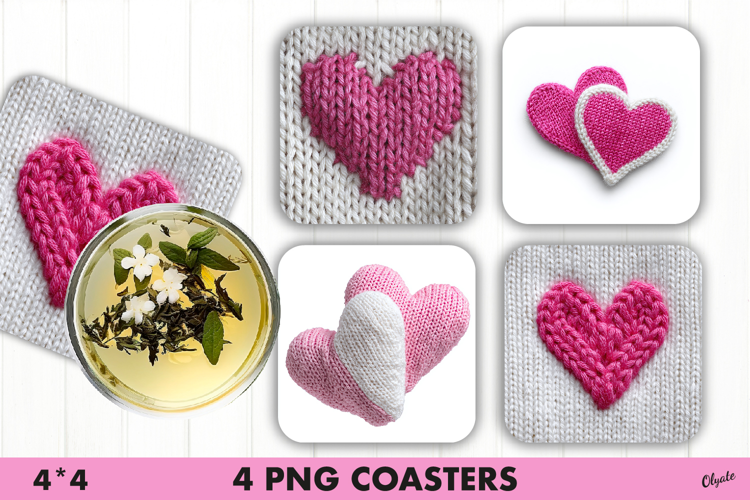 Coaster Design Square Coaster Coaster Sublimation Valentines Day Coaster Square Coaster Sublimation Valentine Coaster Crochet Valentine Crochet pink Heart Knitting Pink Heart Knitting Heart Coaster