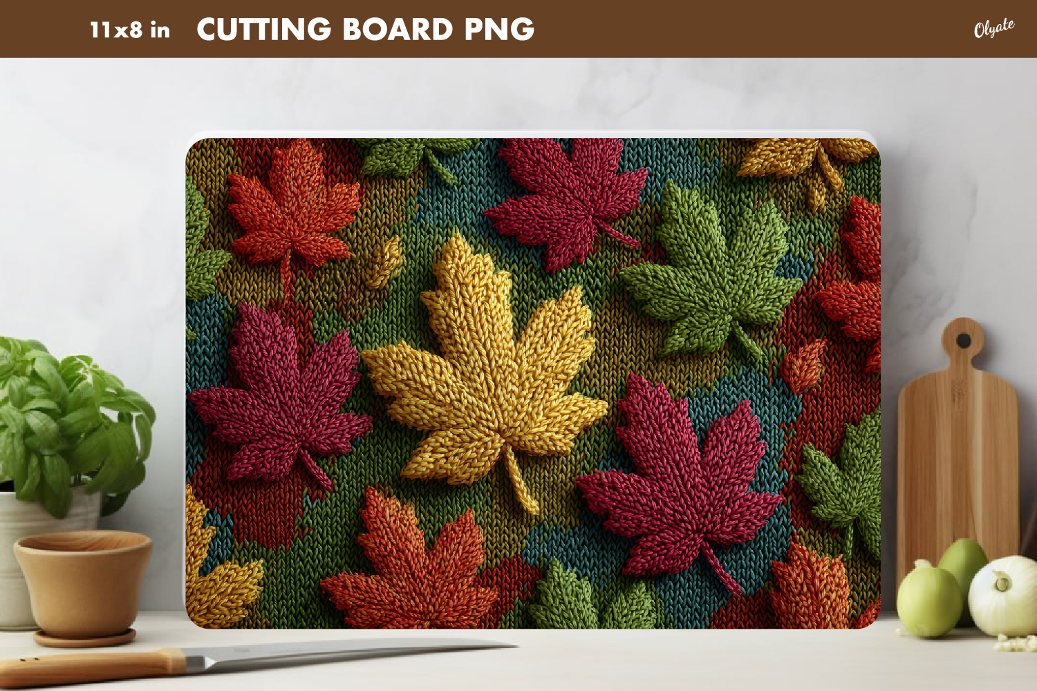 Fall Leaves Sublimation. Crochet Leaves Cutting Board PNG example image 1