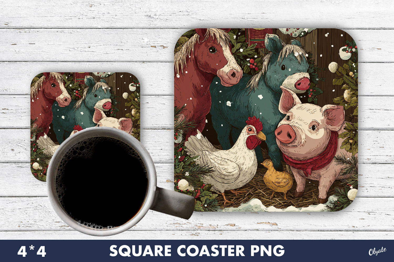 Farmhouse Christmas Farmhouse Christmas Coaster Square Coaster Coaster Sublimation Square Coaster Sublimation Farmhouse Coaster Farm Coaster Farm Animal Coaster Christmas Farm Coaster