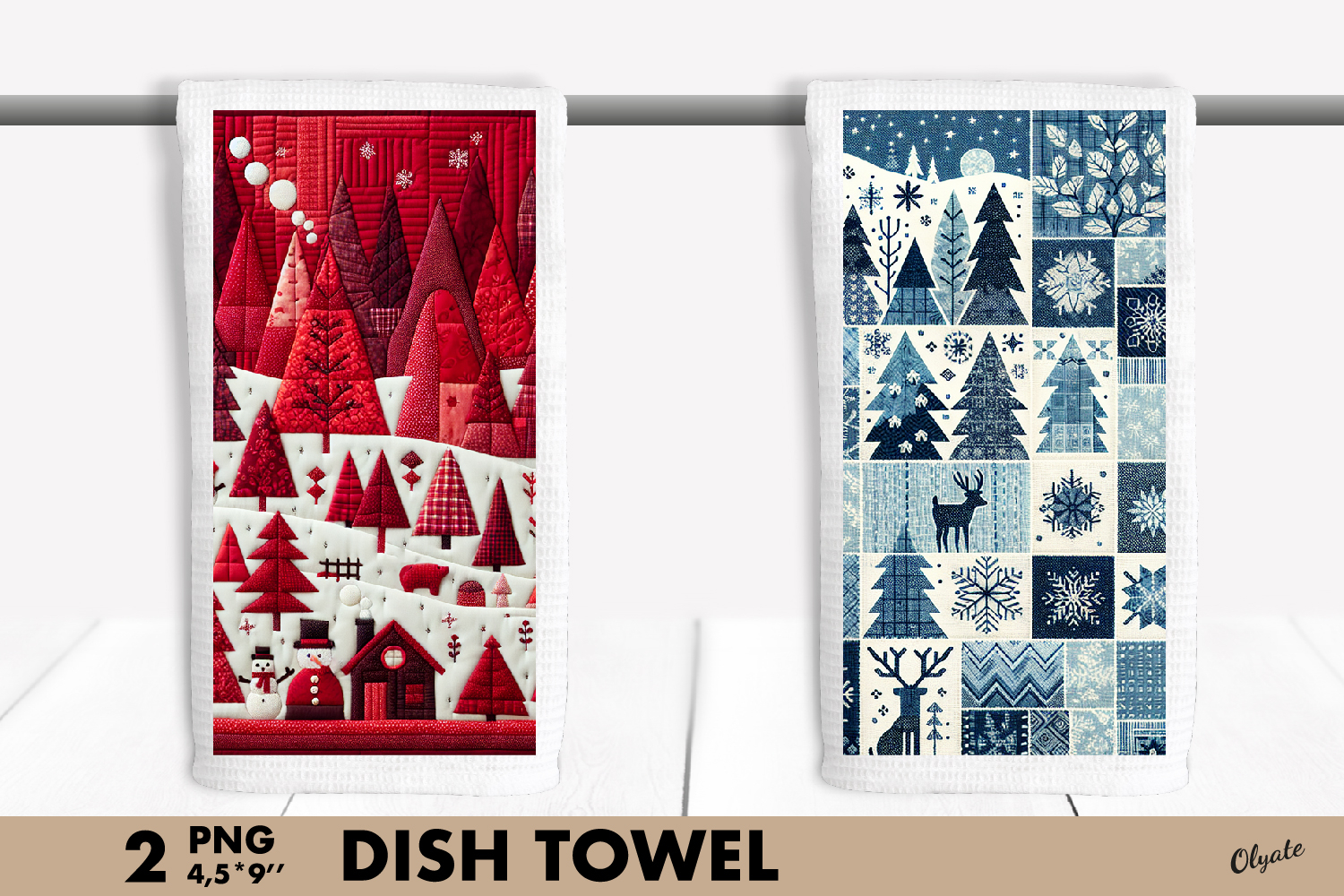 Patchwork XMAS Dish Towel PNG. Christmas Dish Towel example image 1