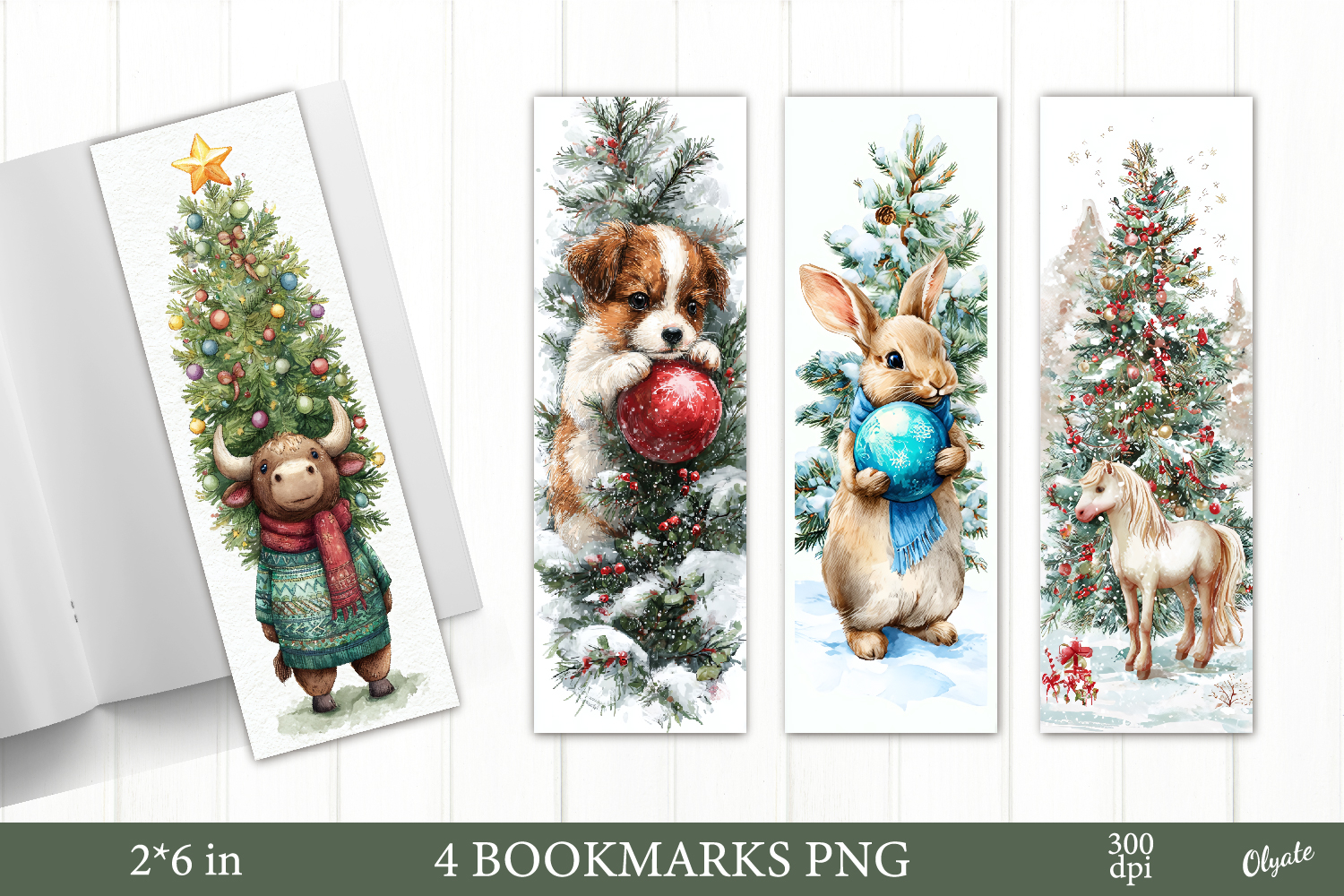 Christmas Animal Bookmarks, 4 PNG Bookmarks example image 1
