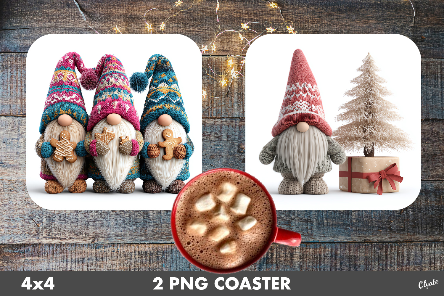 Christmas Gnome Christmas Coaster Square Coaster Coaster Sublimation Knitting Gnome Crochet Gnome Christmas Gnome Coaster Xmas Gnome Coaster Felted Gnome Knitting Gnome Coaster