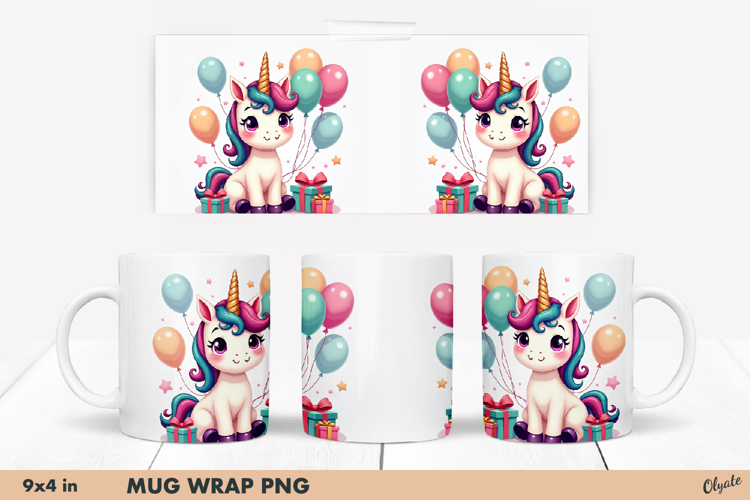 Celebration Cute Unicorn PNG. Cute Animal Mug Wrap