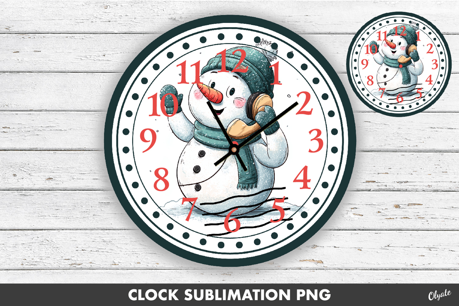 Christmas Clock Face Sublimation PNG. Snowman PNG example image 1
