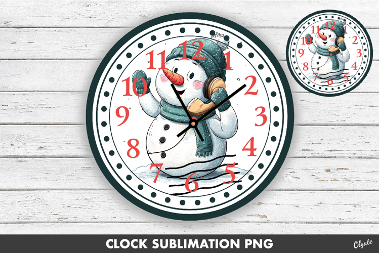 Christmas Clock Face Sublimation PNG. Snowman PNG