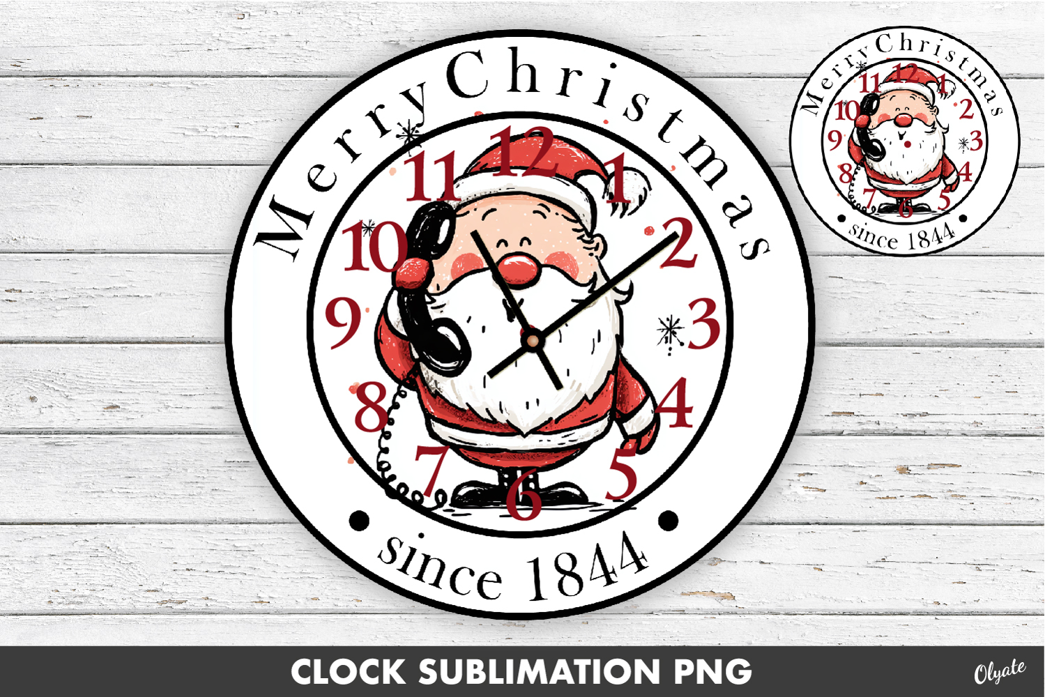 Christmas Clock Sublimation PNG. Santa Design PNG example image 1