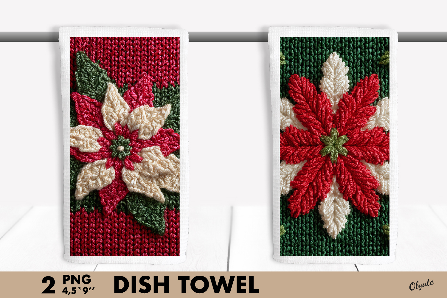 Knitting Poinsettia, Christmas Dish Towel PNG example image 1