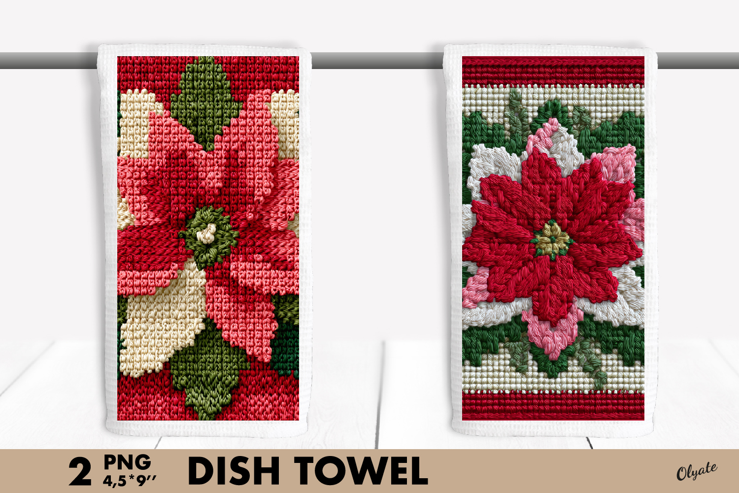 Crochet Poinsettia, Christmas Dish Towel Sublimation example image 1