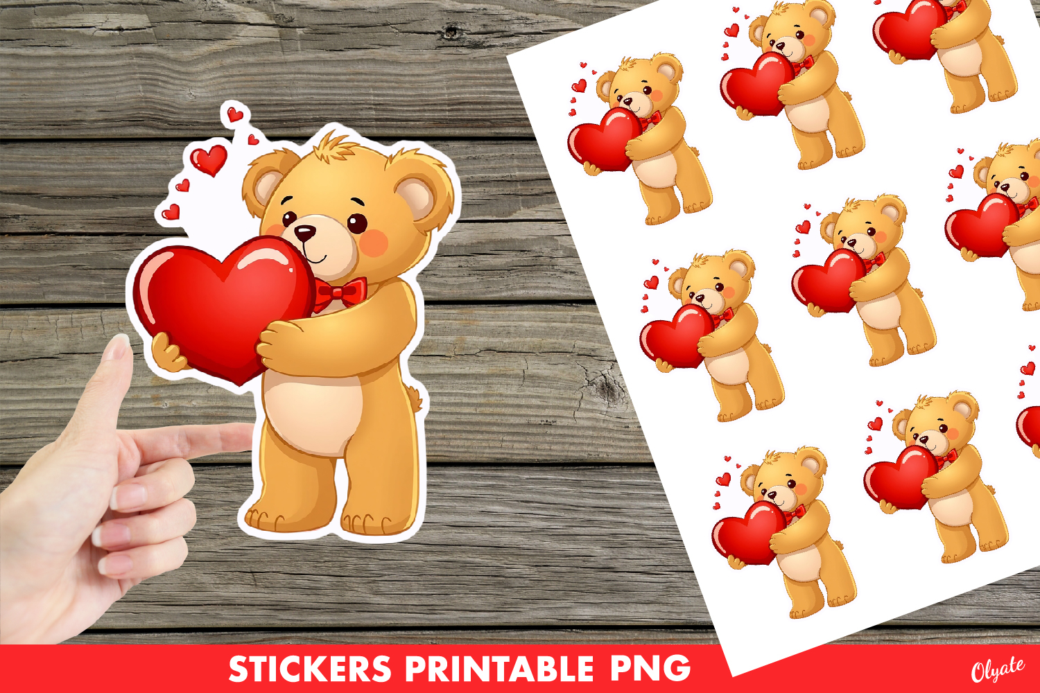 Teddy Bear Valentines Heart Printable Stickers Cute Teddy Bear Bear With Heart Print And Cut Stickers Teddy Bear Sticker Valentines Day Sticker Valentines Sticker Cute Lovely Bear