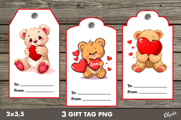 Similar Design Products to Valentine Gift Tag PNG. Cute Teddy Bear Labels PNG