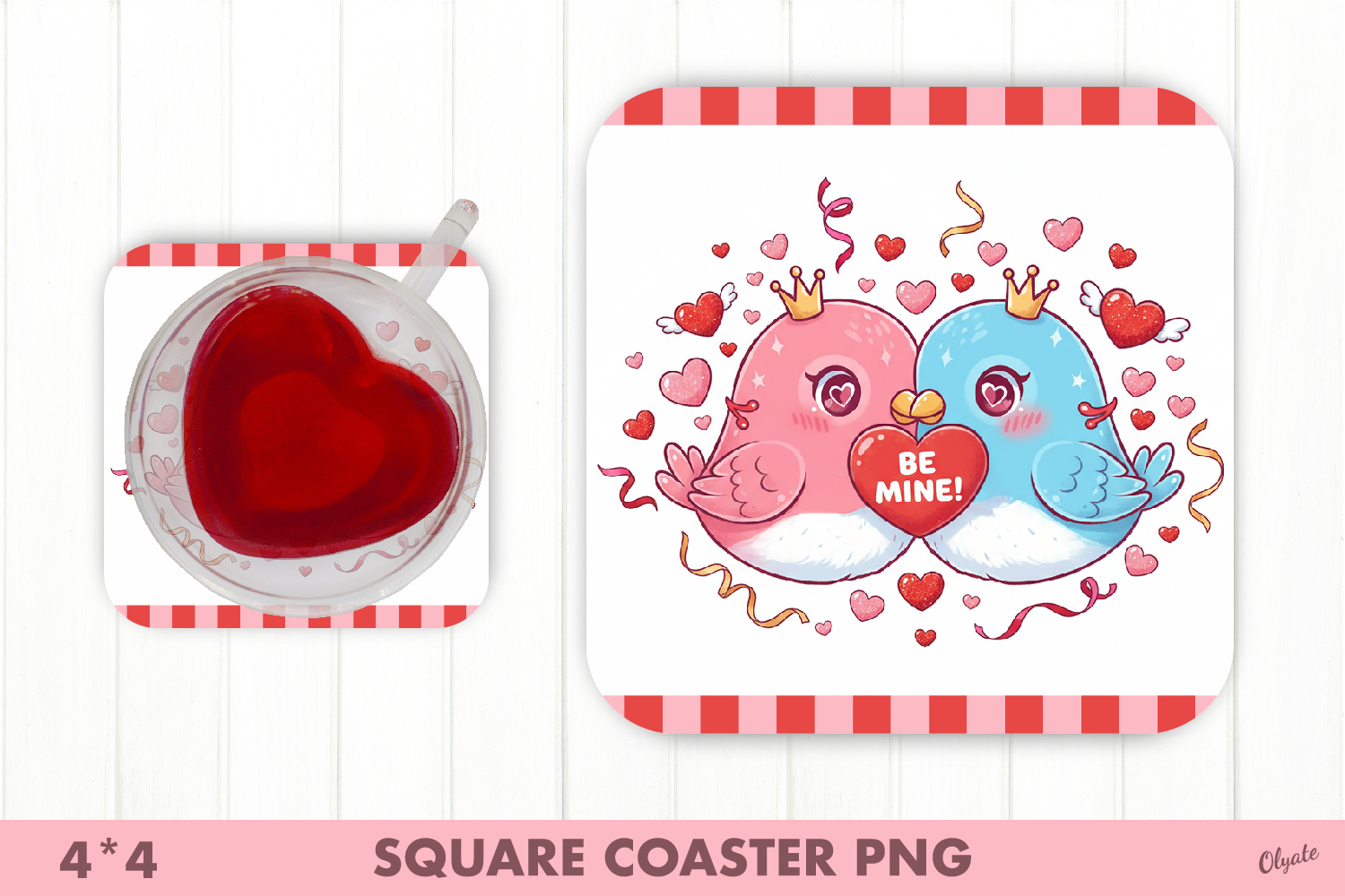 Love Bird Valentine Sublimation Coaster Sublimation Valentines Day Coaster Love Coaster Happy Bird Couple Bird Square Coaster Sublimation Bird Coaster Valentine Coaster