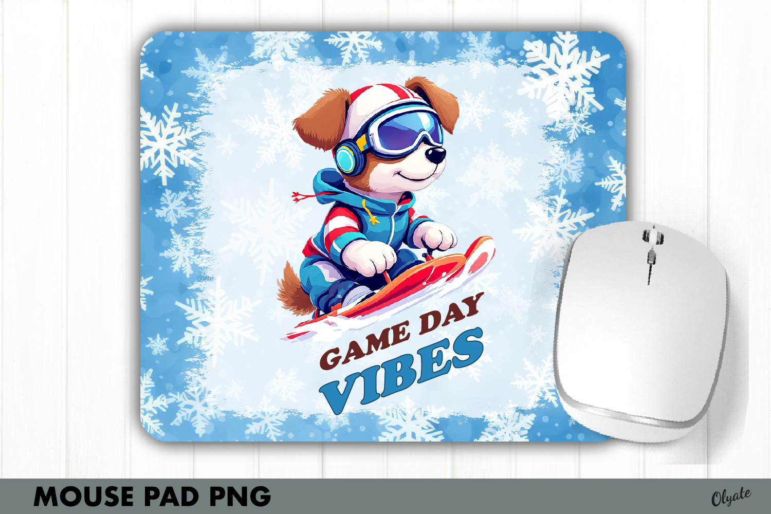 Cute Dog Mouse Pad PNG, Winter Sport Sublimation Mouse Pad example image 1
