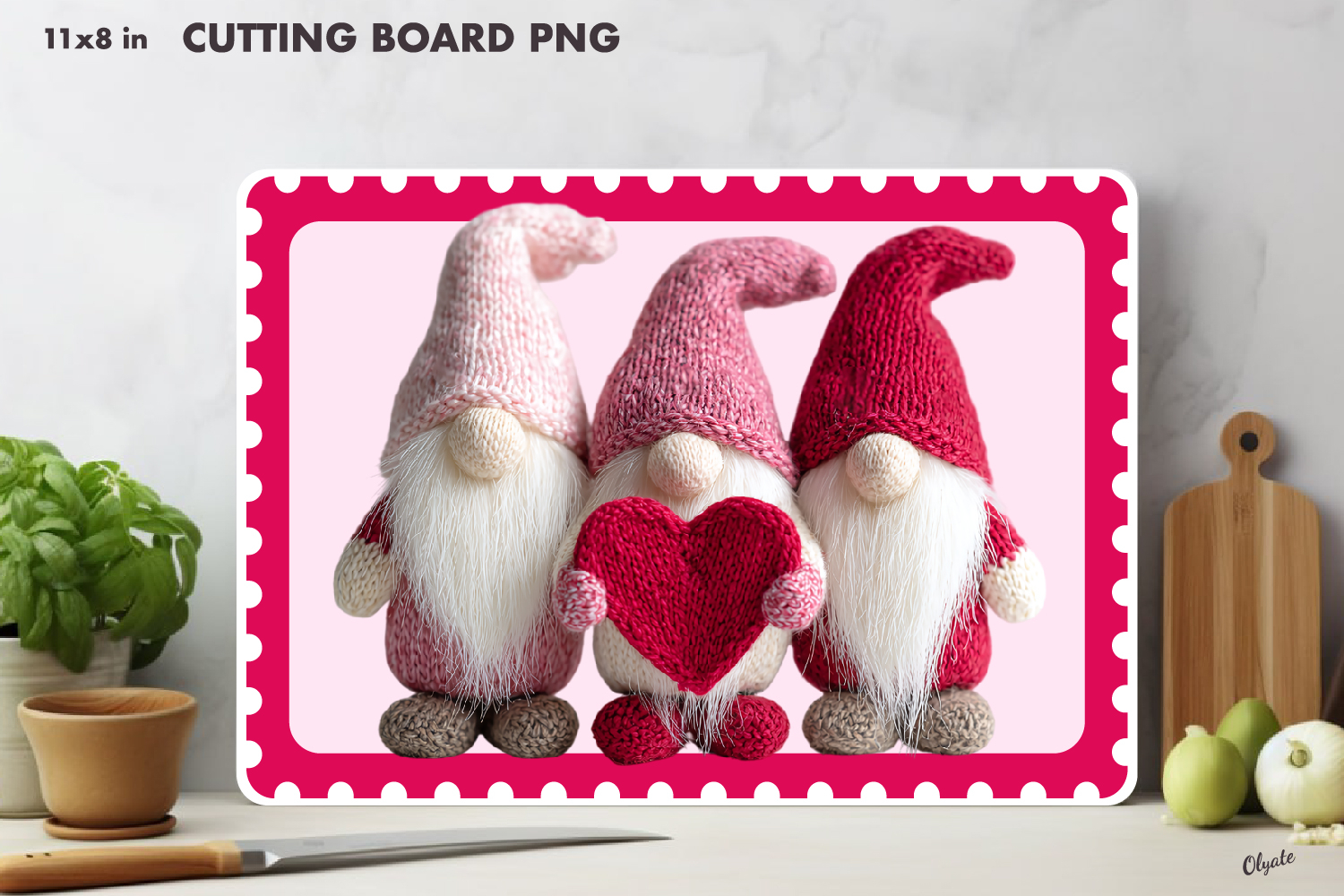 Pink Valentine Gnomes Cutting Board Sublimation example image 1