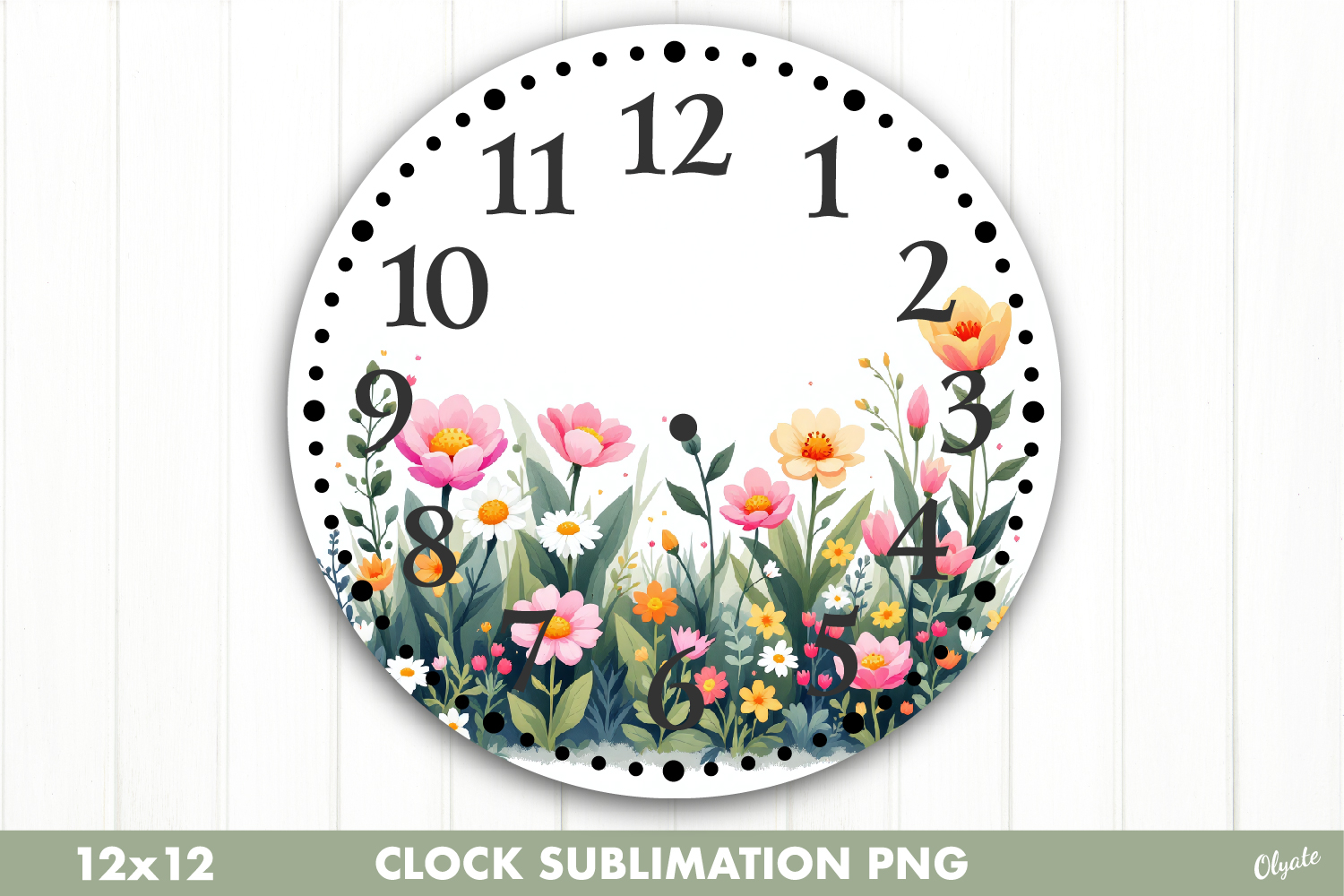 Spring Clock Sublimation. Garden Clock Design PNG example image 1