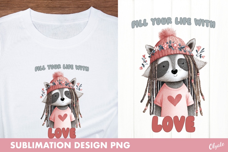 Similar Design Products to Whimsical Hippie Raccoon PNG, Valentine Sublimation PNG