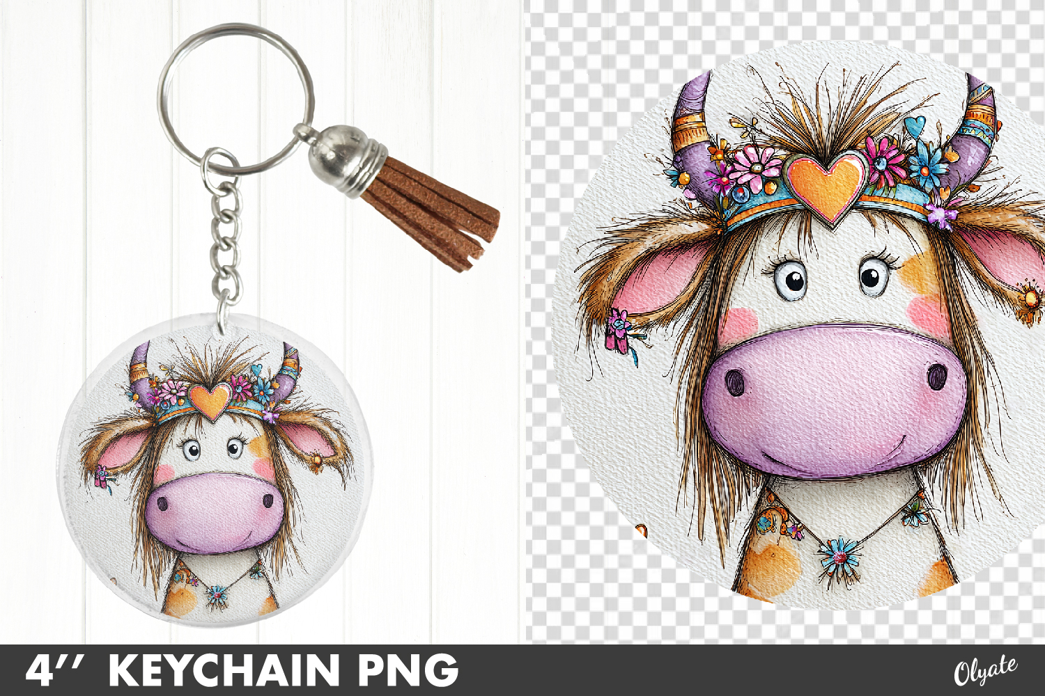 Similar Design Products to Valentine Keychain PNG, Whimsical Cute Cow Sublimation