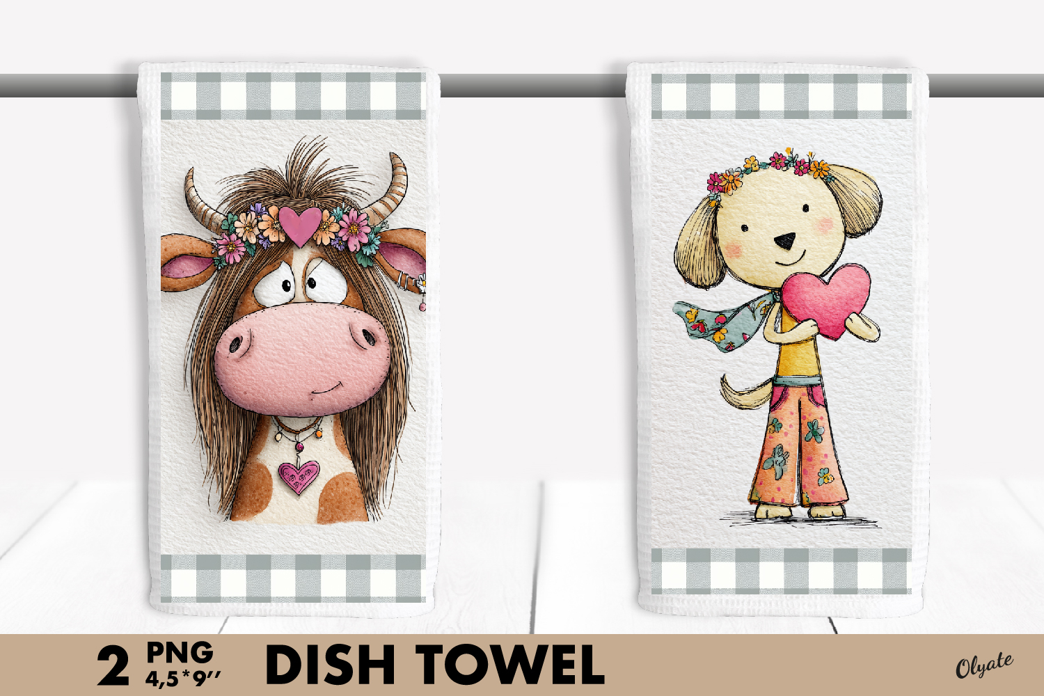 Whimsical Valentine Dish Towel PNG. Retro Animal Kitchen PNG example image 1