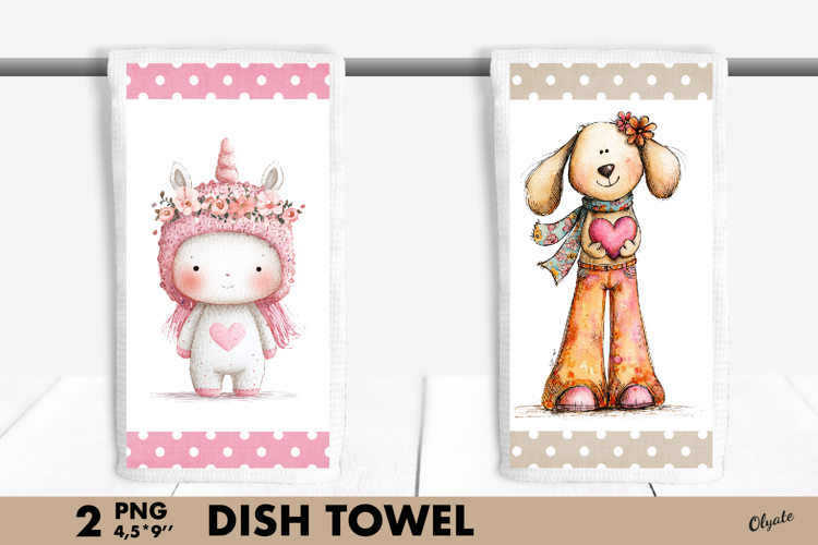 Whimsical Valentine Dish Towel PNG. Love Animal Kitchen PNG example image 1