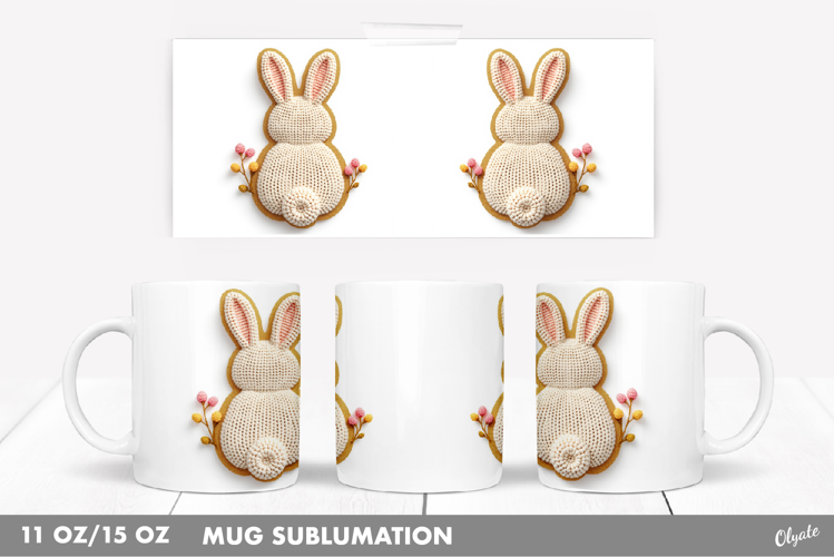 Easter Mug Wrap PNG, Crochet Bunny, 11 OZ, 15 OZ Mug example image 1