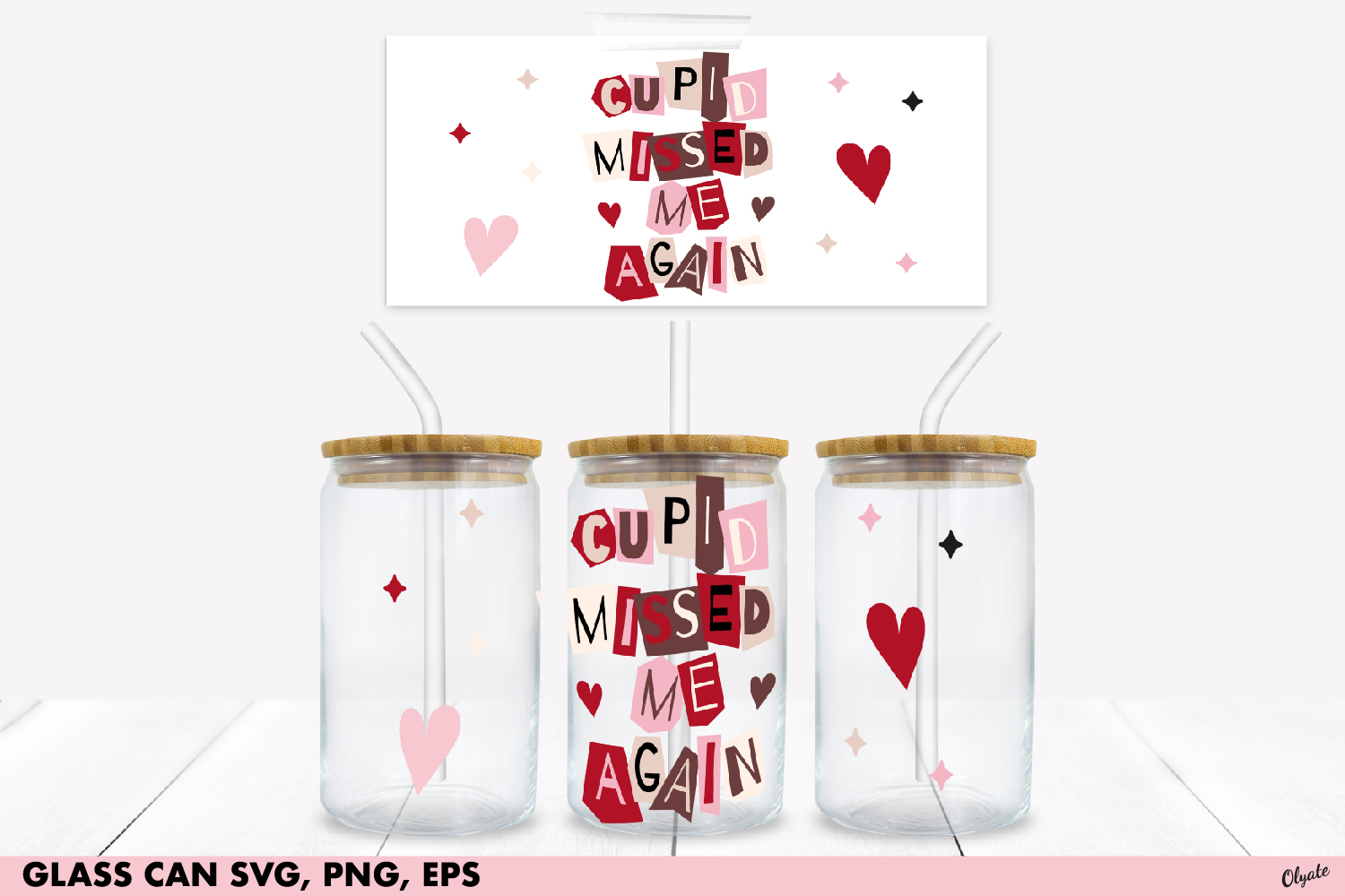 Valentine’s Day Glass Can SVG, EPS, PNG. Glass Can 16 OZ