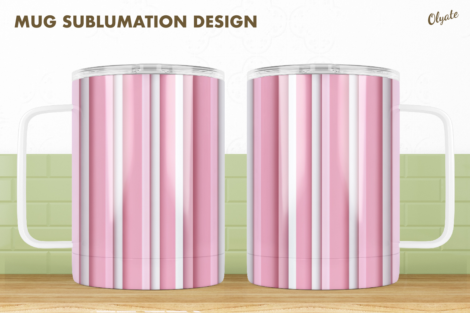 Pastel Colors Mug Sublimation Design, Pink Striped Mug PNG example image 1
