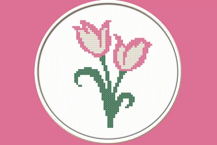 Sweet Printable Pink Flower Embroidery Simple Pattern Cross Stitch Needlecraft Cross Stitch Pattern Counted Cross Stitch Pink Tulip