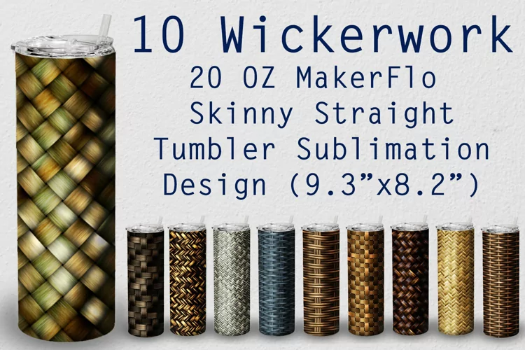 10 of Wickerwork sublimation wrap design for 20 oz MakerFlo Skinny straight tumblers.