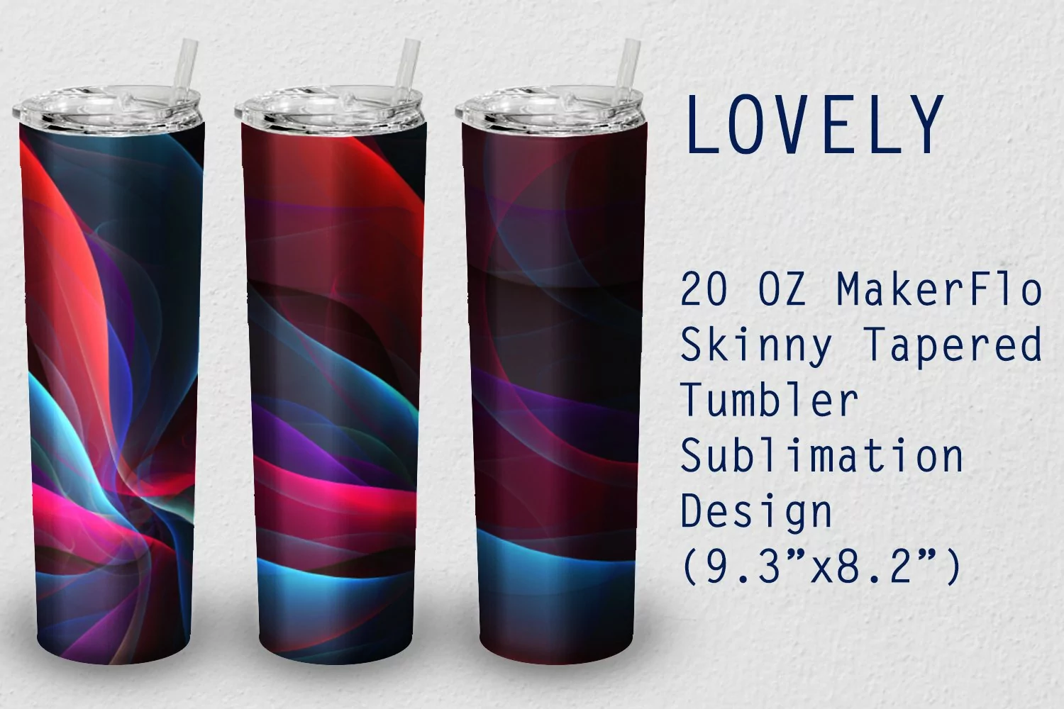 Lovely abstract sublimation wrap design for 20 oz MakerFlo Skinny tapered tumblers.