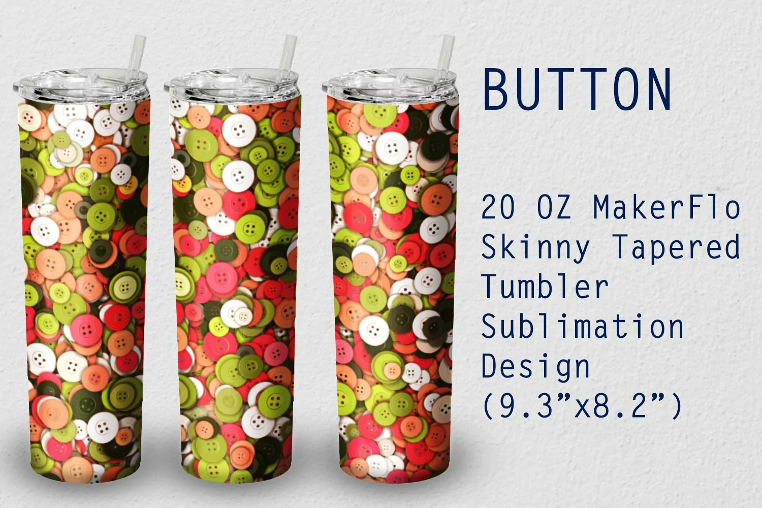 Button sublimation wrap design for 20 oz MakerFlo Skinny tapered tumblers.