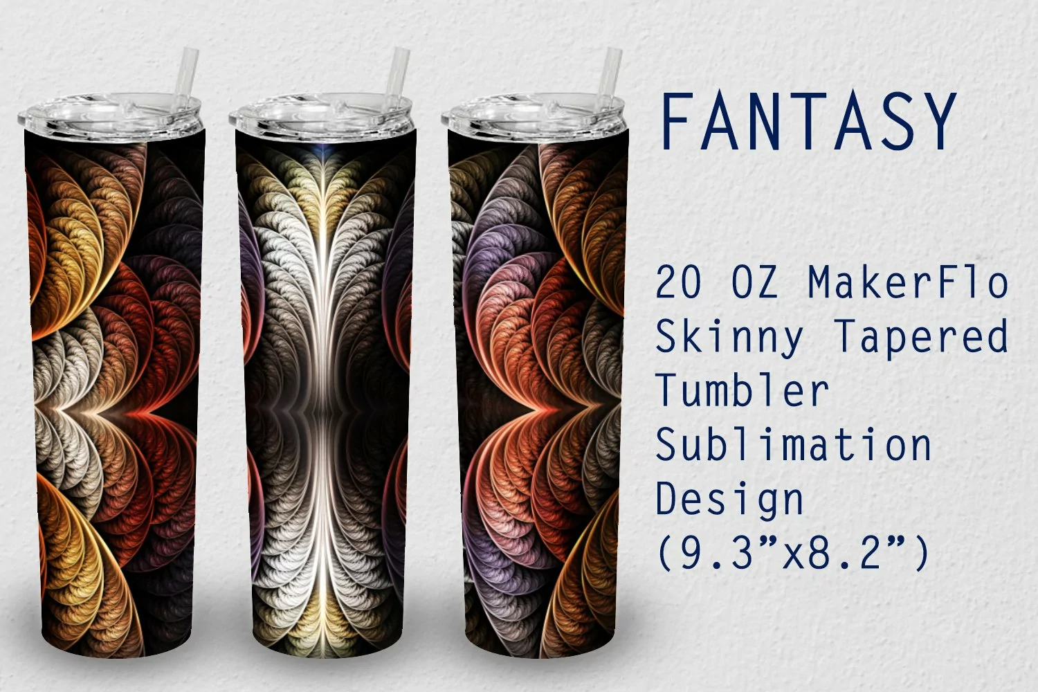 Fantasy sublimation wrap design for 20 oz MakerFlo Skinny tapered tumblers.