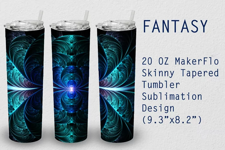 Fantasy sublimation wrap design for 20 oz MakerFlo Skinny tapered tumblers.