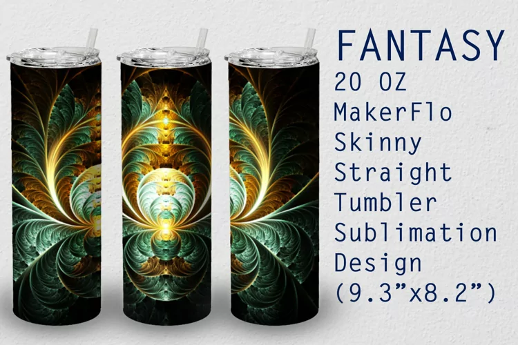 Fantasy sublimation wrap design for 20 oz MakerFlo Skinny straight tumblers.