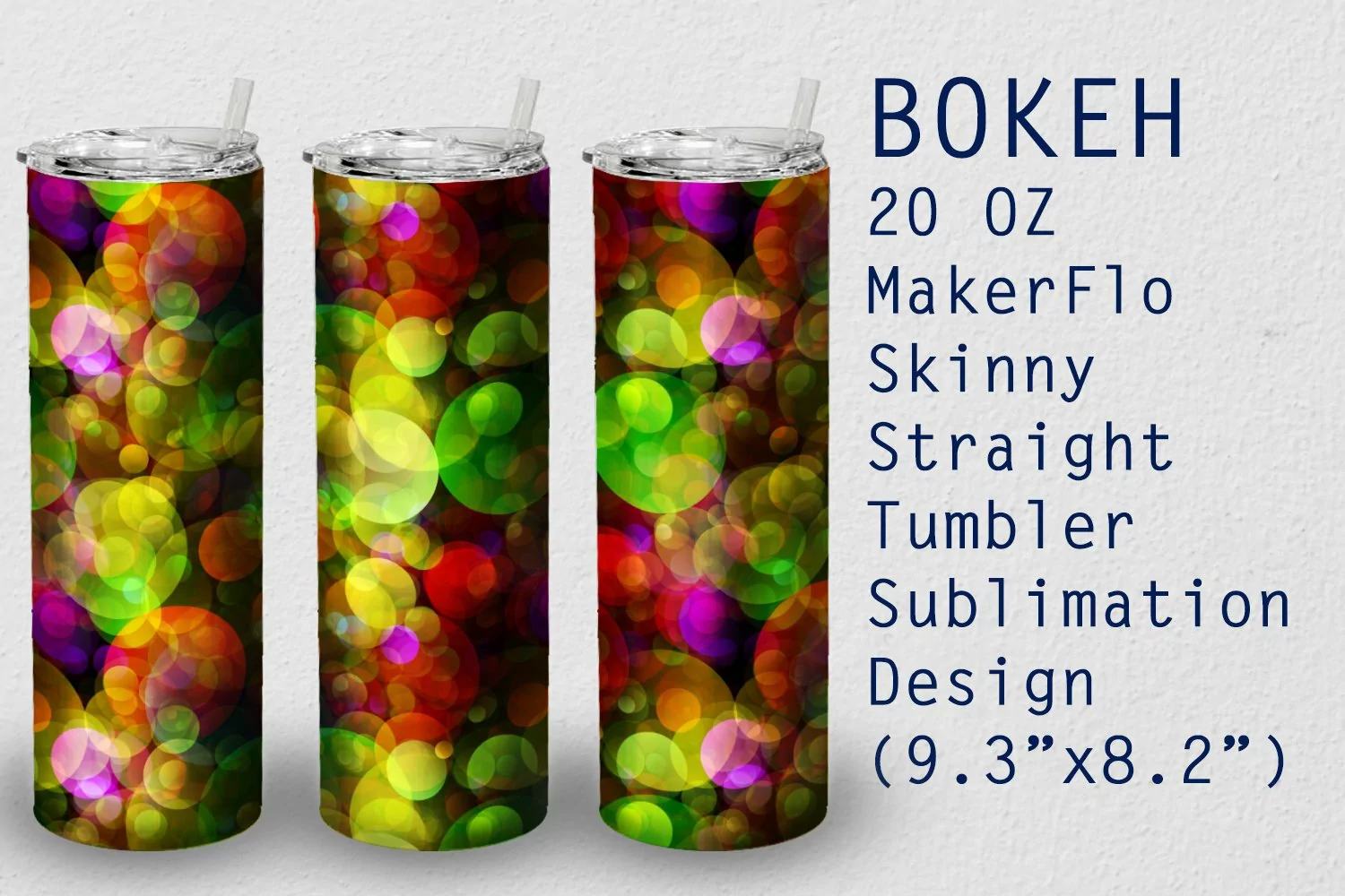 Bokeh sublimation wrap design for 20 oz MakerFlo Skinny straight tumblers.