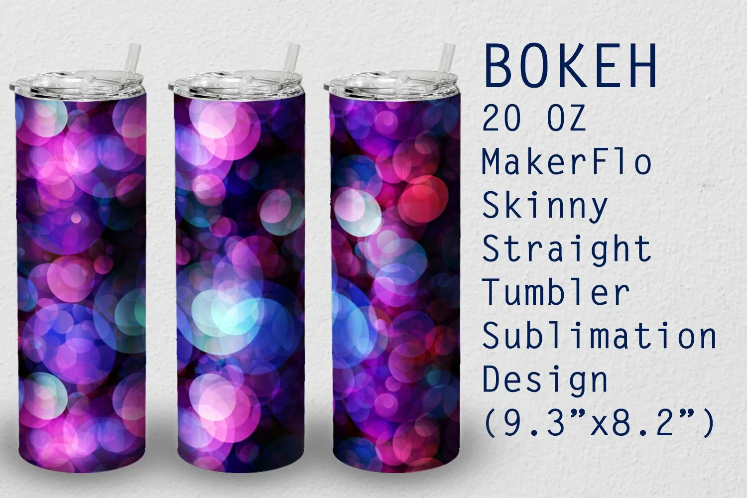 Bokeh sublimation wrap design for 20 oz MakerFlo Skinny straight tumblers.