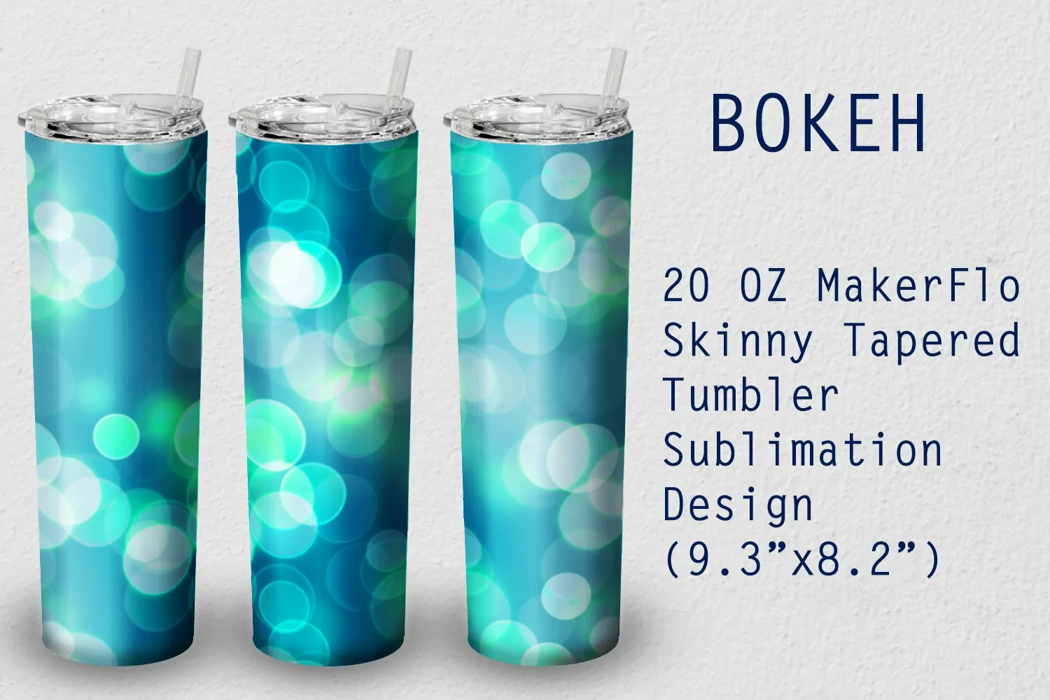 Bokeh sublimation wrap design for 20 oz MakerFlo Skinny tapered tumblers.