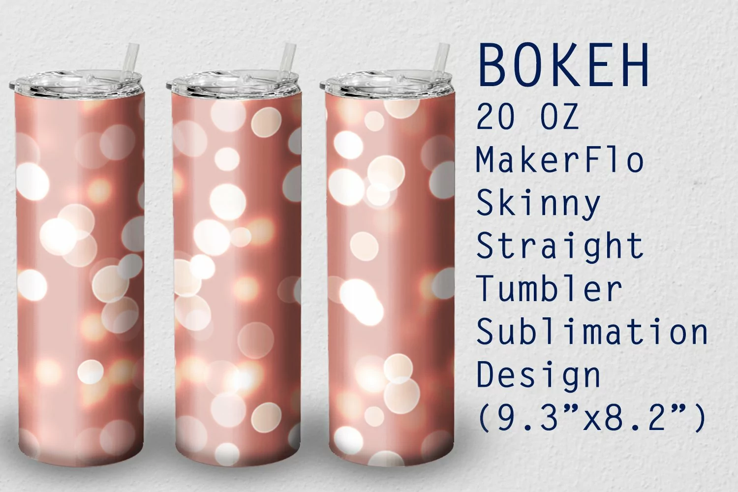 Bokeh sublimation wrap design for 20 oz MakerFlo Skinny straight tumblers.