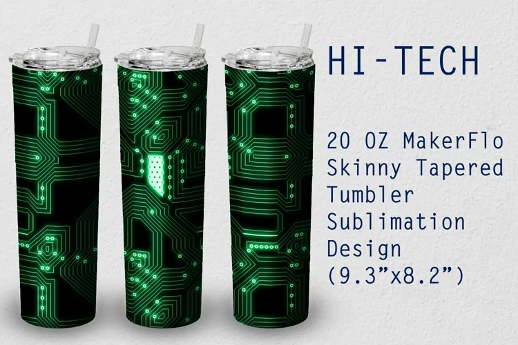 Hi-Tech sublimation wrap design for 20 oz MakerFlo Skinny tapered tumblers.