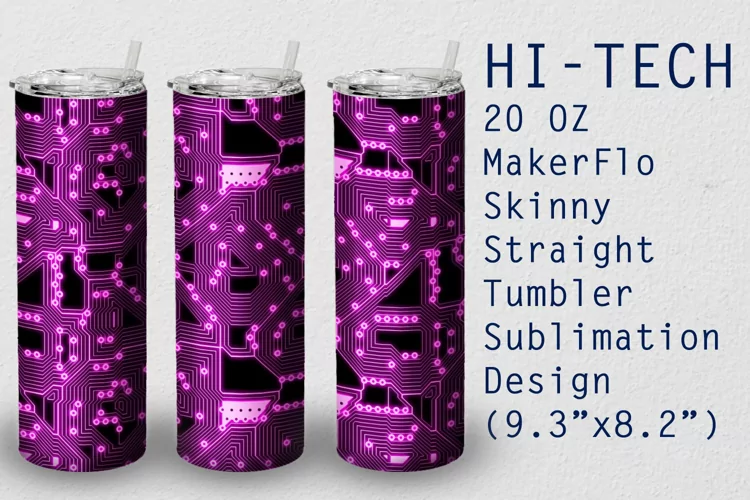 Hi-Tech sublimation wrap design for 20 oz MakerFlo Skinny straight tumblers.
