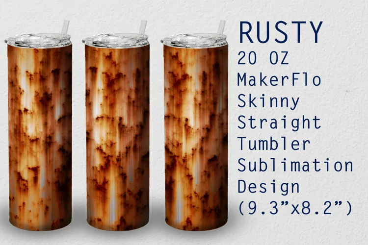 Rusty sublimation wrap design for 20 oz MakerFlo Skinny straight tumblers.