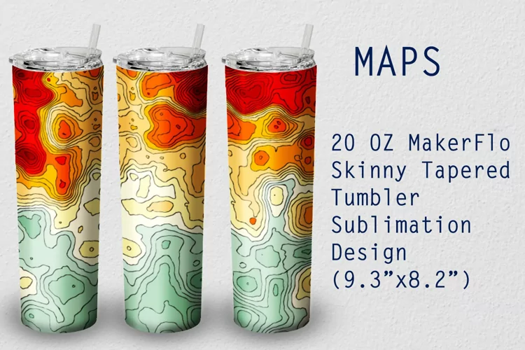 Topographic sublimation wrap design for 20 oz MakerFlo Skinny tapered tumblers.