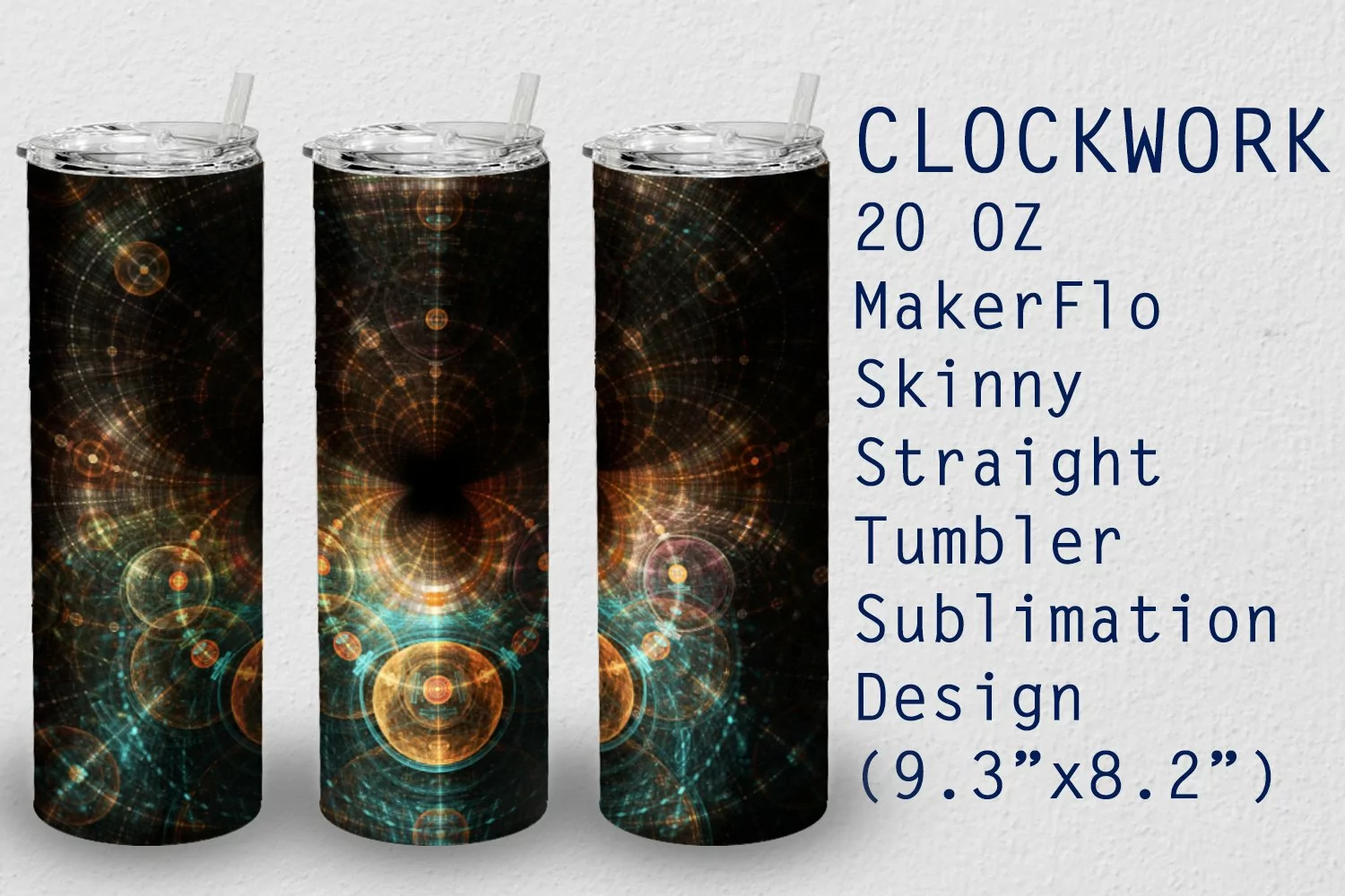 Clockwork sublimation wrap design for 20 oz MakerFlo Skinny straight tumblers.
