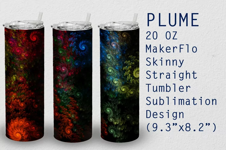 Plume sublimation wrap design for 20 oz MakerFlo Skinny straight tumblers.