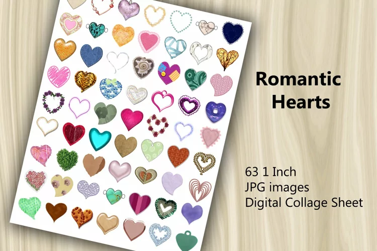 Digital Collage Sheet - 63 1x1 Inch JPG images - Romantic Hearts