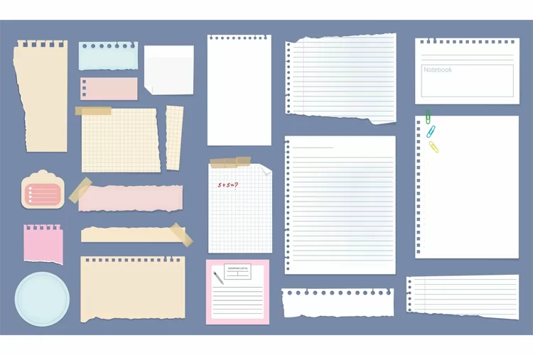 Paper notes. Copybook linear pages lists of notebooks different sizes stripped notes vector. Sheet paper stationery, checkered note page, notepaper different illustration