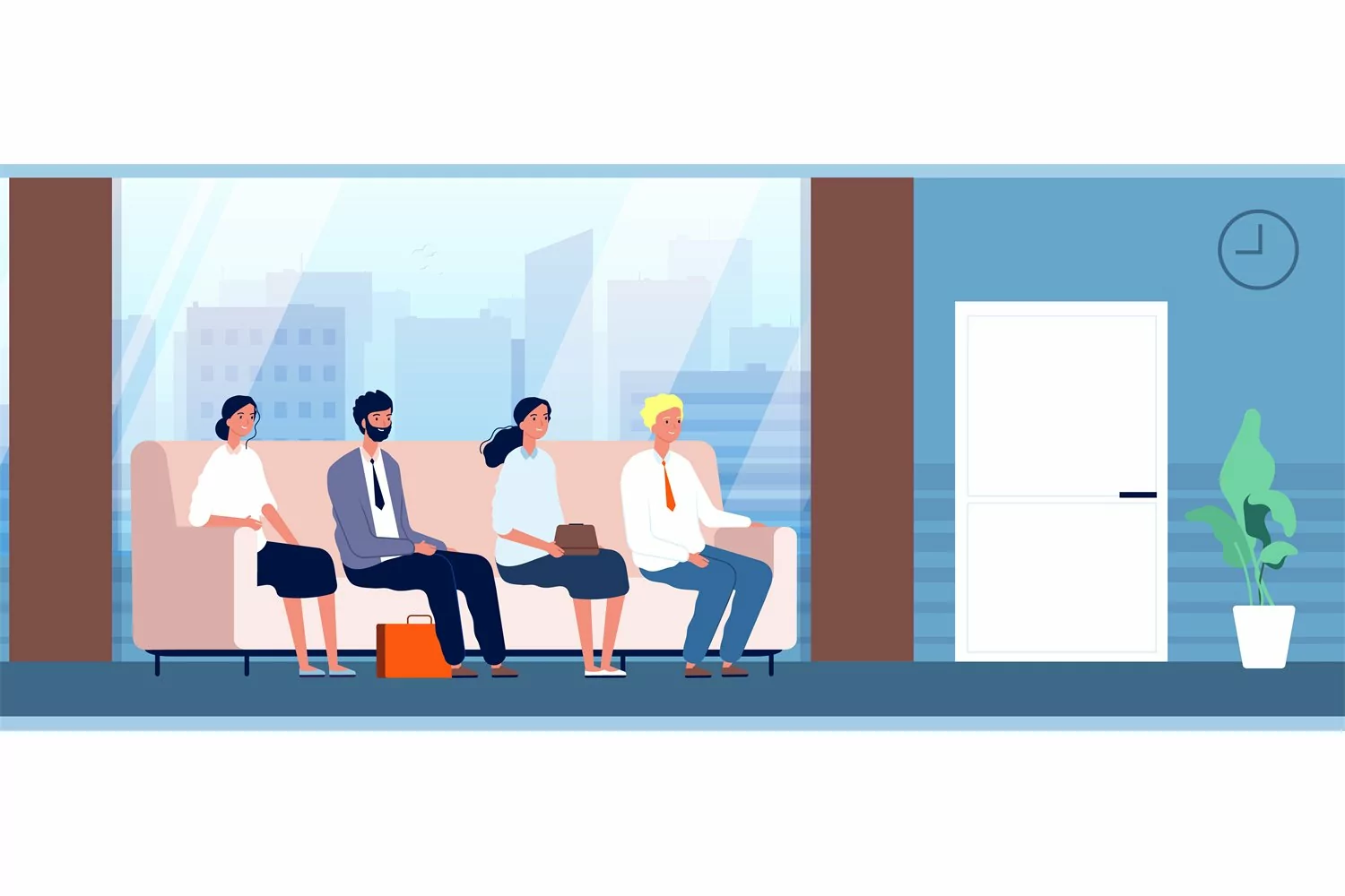 People sitting in hallway. Office workers, interview waiting example image 1