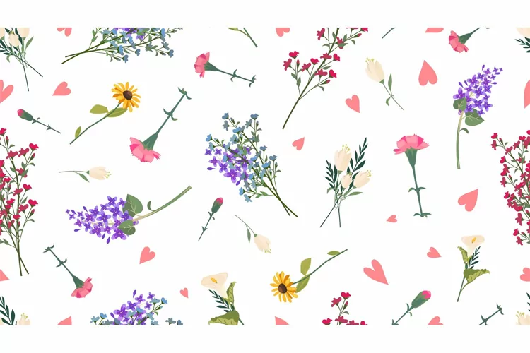 Wild flowers pattern. Spring summer print, love romantic floral vector seamless texture. Illustration romantic spring floral pattern decoration