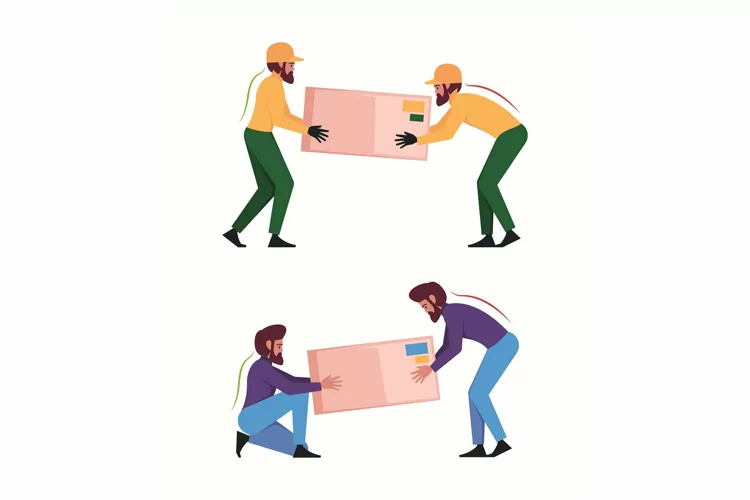 Similar Design Products to Heavy lifting. Workers demonstrating correct movement of hea