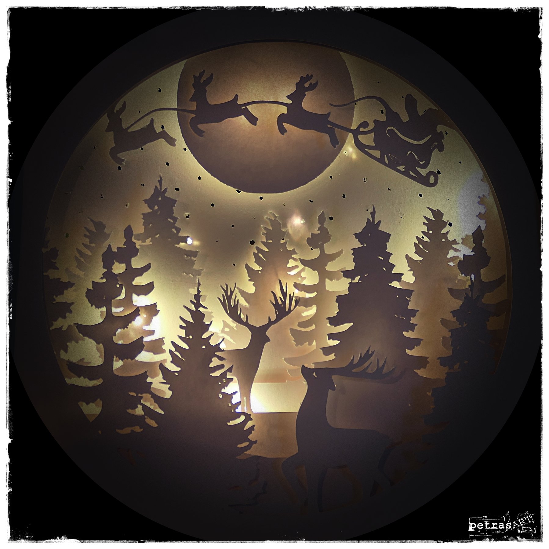 Santa flying above the treetops, Christmas 3d layered shadow box SVG shadowbox